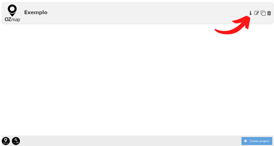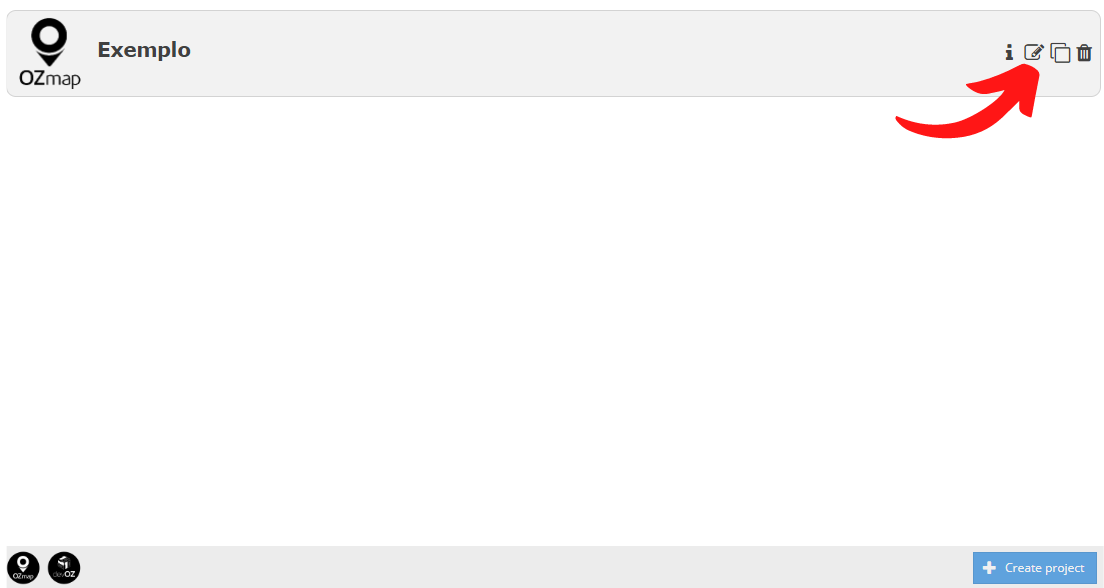 As soon as you access OZmap for the first time, you will see the empty screen of projects, since you do not have one.