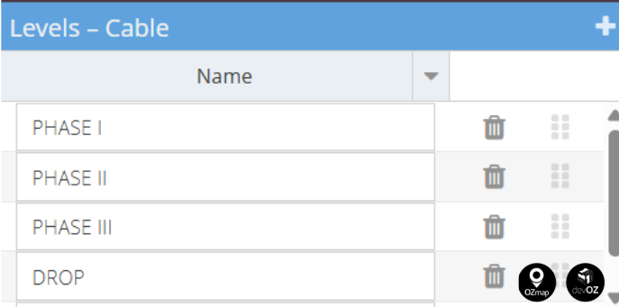 Tower levels work the same way as other levels. By default, a PRIMARY level is already available, but you can add more levels or rename existing ones as needed. Towers are exclusively part of the OZmap 5G Module. For more information, click here.