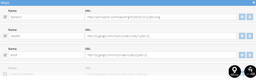 In this section, you can add additional maps to OZmap. By default, the system includes 3 maps that cannot be deleted, but you may add more if needed. To do so, simply provide a name and specify the map URL.