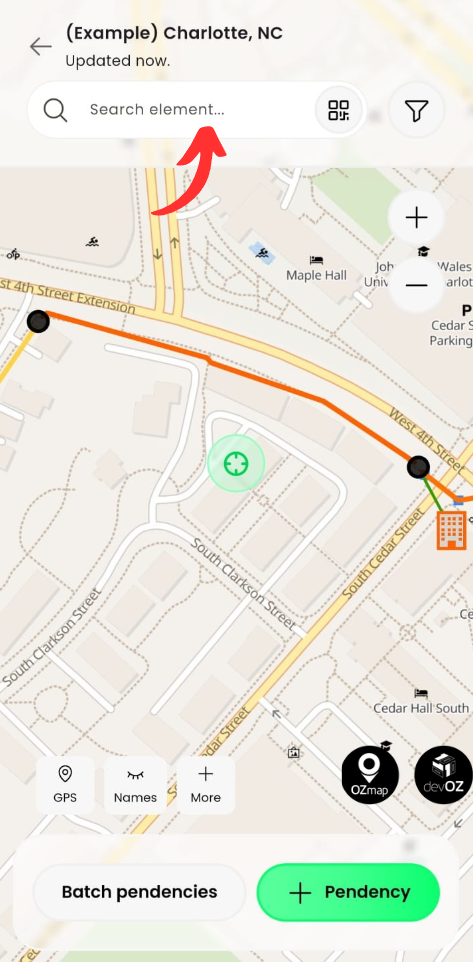At the top of the screen, there is a search field. Here, you can look for specific elements by name.