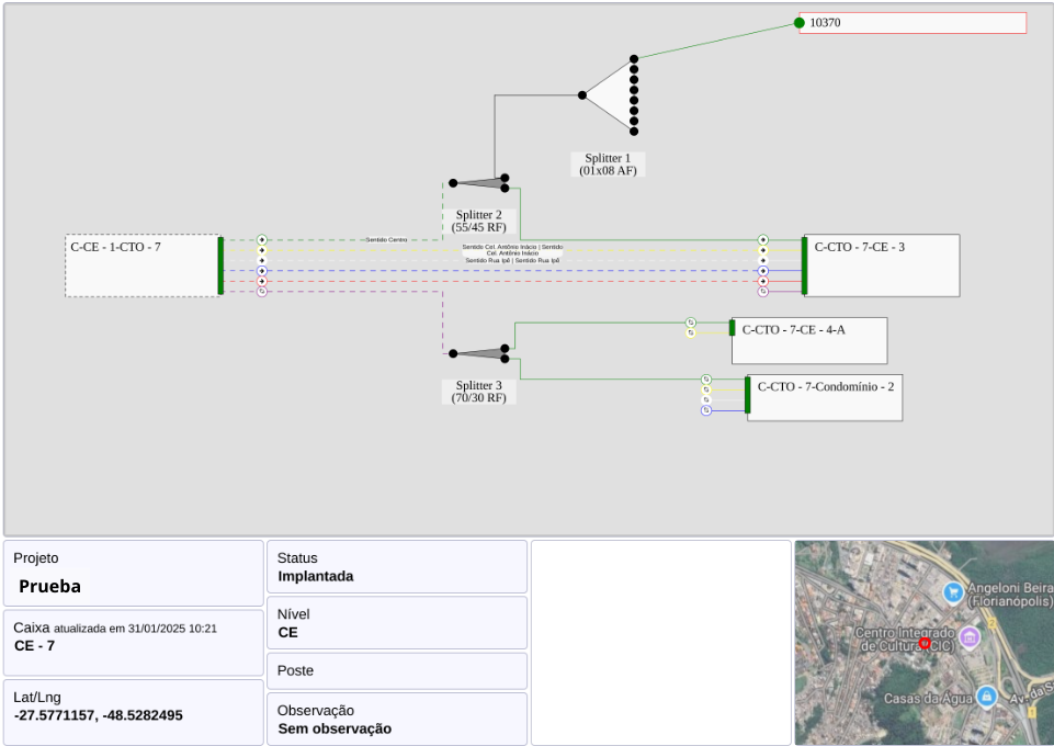 También es posible bloquear individualmente las puertos de los splitters, por lo que no es posible realizar conexiones y ventas en ella, agregar etiquetas, observaciones y potencia.