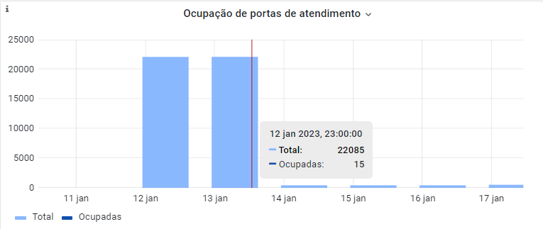 En el gráfico de ocupación del puerto de servicio, los datos son una comparación entre la cantidad de puertos existentes en el sistema y la cantidad de puertos que están ocupados. Este gráfico tiene en cuenta todos los equipos que permiten la conexión con el cliente, ya sean divisores, conmutadores, fusionadores, etc. Este gráfico se puede usar para rastrear si la capacidad de su puerto está llegando a su límite.