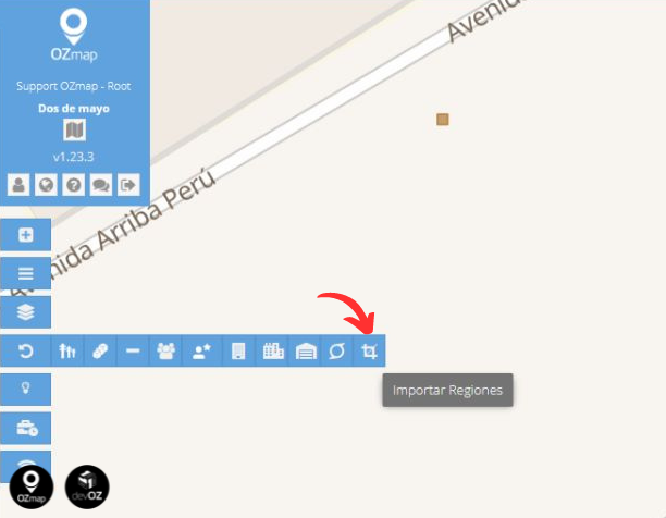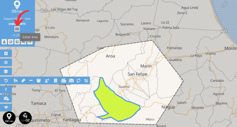 | Después de importar su región a OZmap, lo importante ahora es aplicarla en el área del proyecto. Para hacer esto, simplemente haga clic en el botón resaltado por la impresión para editar. |