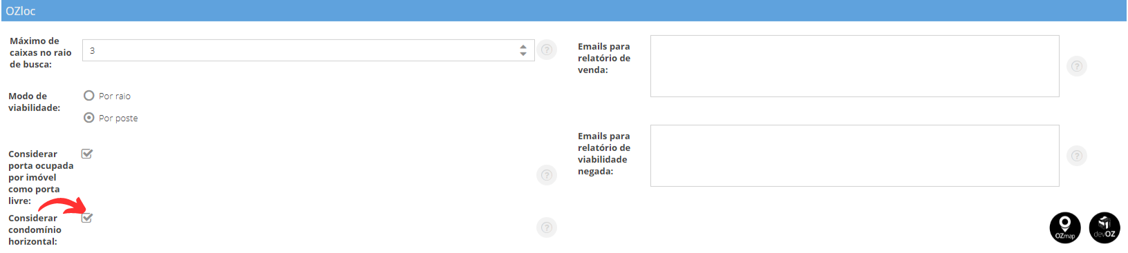 Para que o sistema reconheça a viabilidade por condomínio horizontal é necessário habilitar nas configurações de sistema a seguinte opção:
