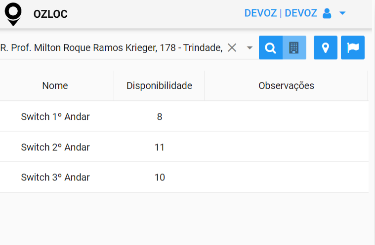 Nesse exemplo, é possível visualizar que a nomeação dos switches é de acordo com o andar. Assim, no OZloc, você saberá em qual dispositivo conectar seu cliente.
